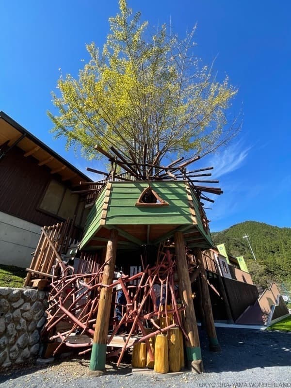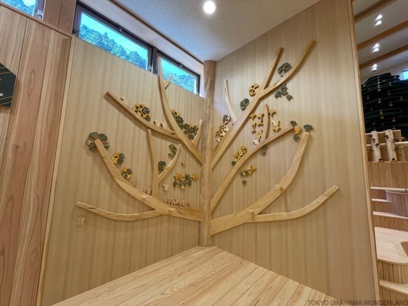 ここ檜原森のおもちゃ美術館ができる前、ここは北檜原小学校という小学校があったんだ。 このイチョウの木は、その頃からこの小学校のシンボルツリーだったんだよ。 秋にはきれいに黄色く紅葉するよ! おもちゃ美術館の館内(有料エリア)にも、イチョウがモチーフの遊具があるよ。 さがしてみてね!