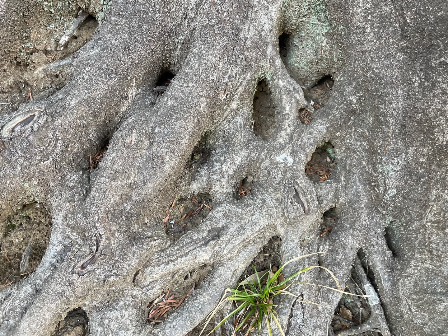 根っこが絡みあって網の目のように見える・・・だけじゃなくて、ほんとに根っこと根っこがあちこちでくっついてる!これは癒合(ゆごう)と言って、根っこ同士がくっついて、水や栄養などが複雑に流れ合っているんだ。