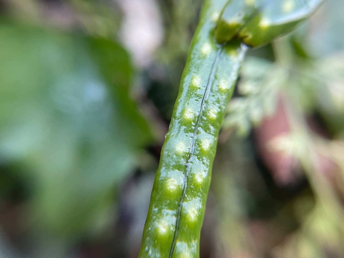 この2列並んだぶつぶつ模様の葉っぱは、「ノキシノブ」というシダの仲間。