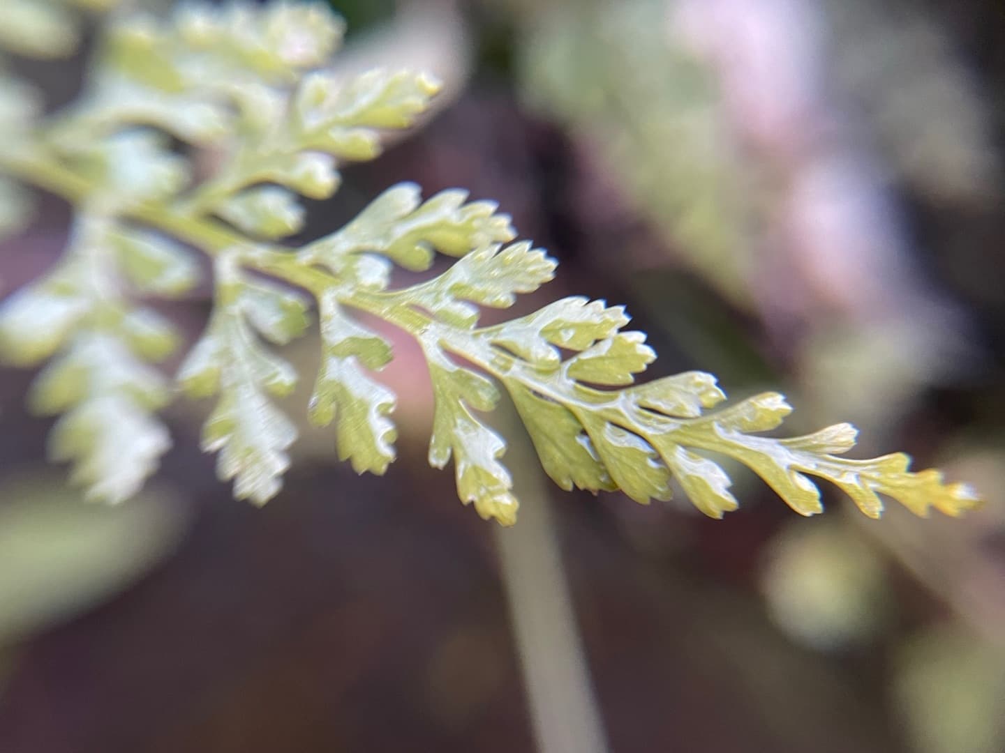 薄い緑色の植物、これもシダの仲間。